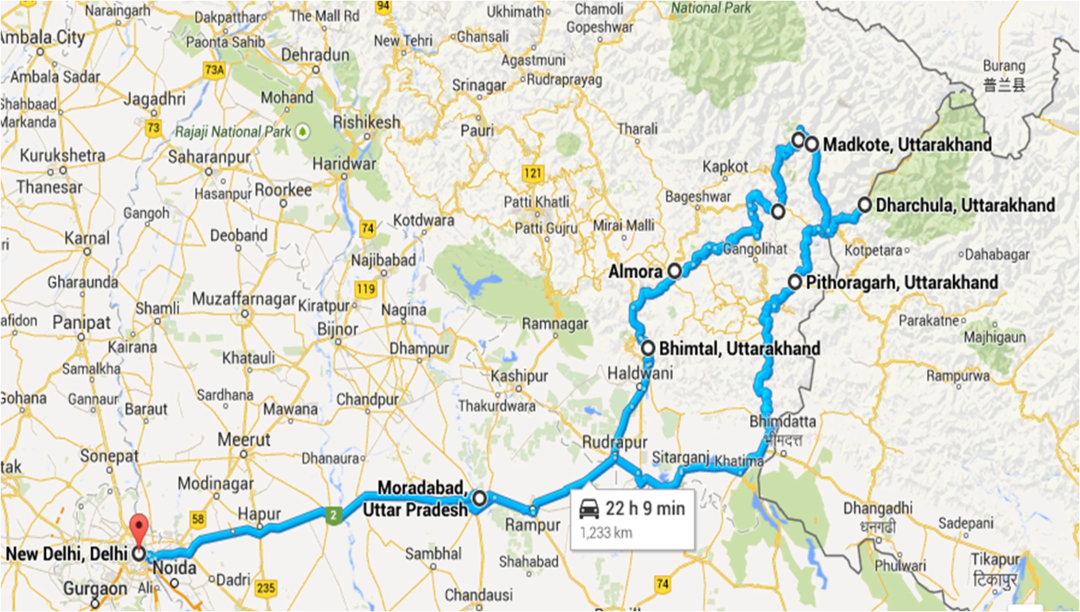 - Via Taxi/Private Vehicle – One can drive from Delhi – Haldwani – Bhimtaal – Almora – Pithoragarh – Dharchula almost around 600 km (599.4 km to be precised). Well there is another route via Sheraghat & Thal, which is actually more beautiful & serene and around 20-30 km shorter.