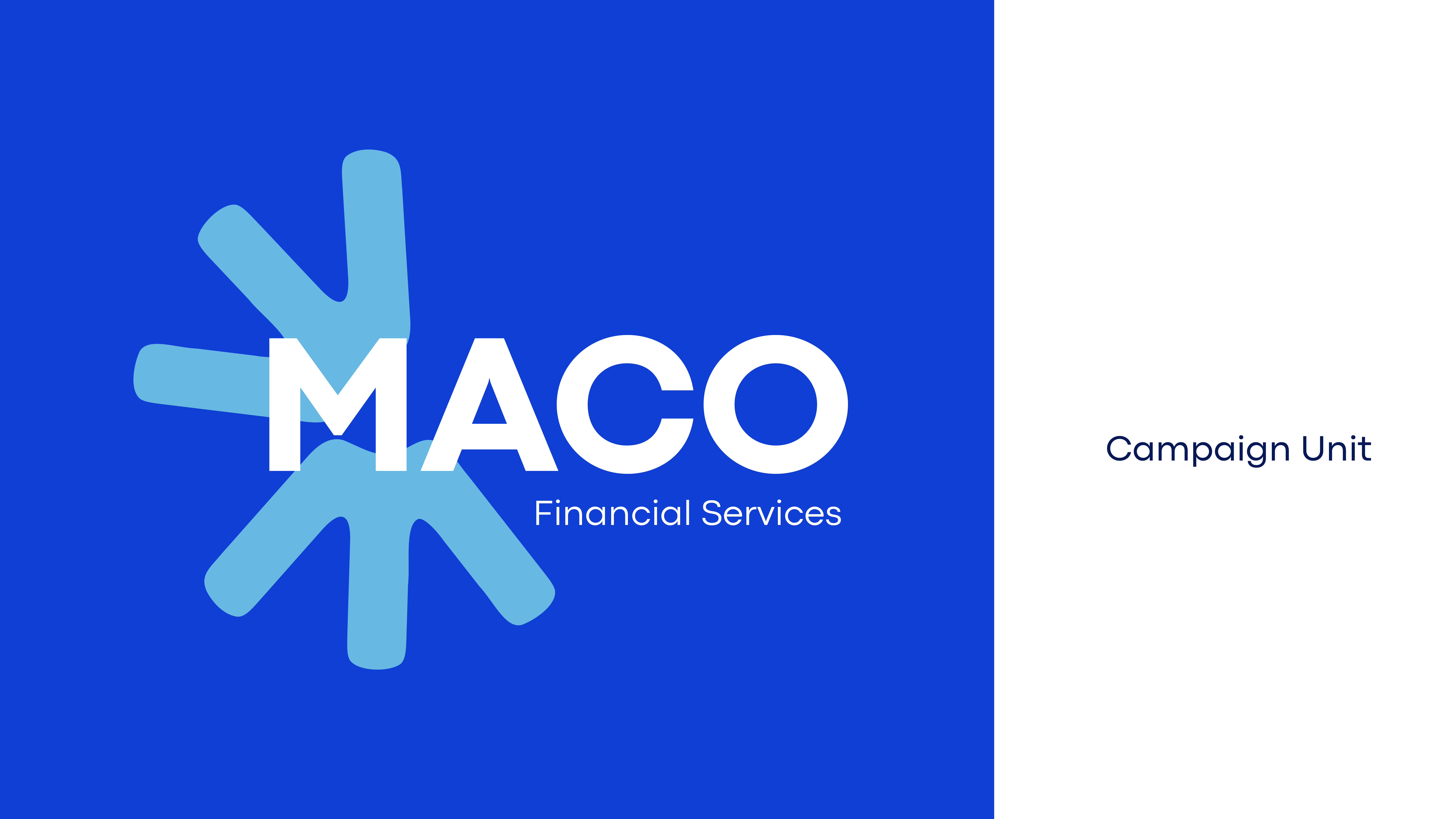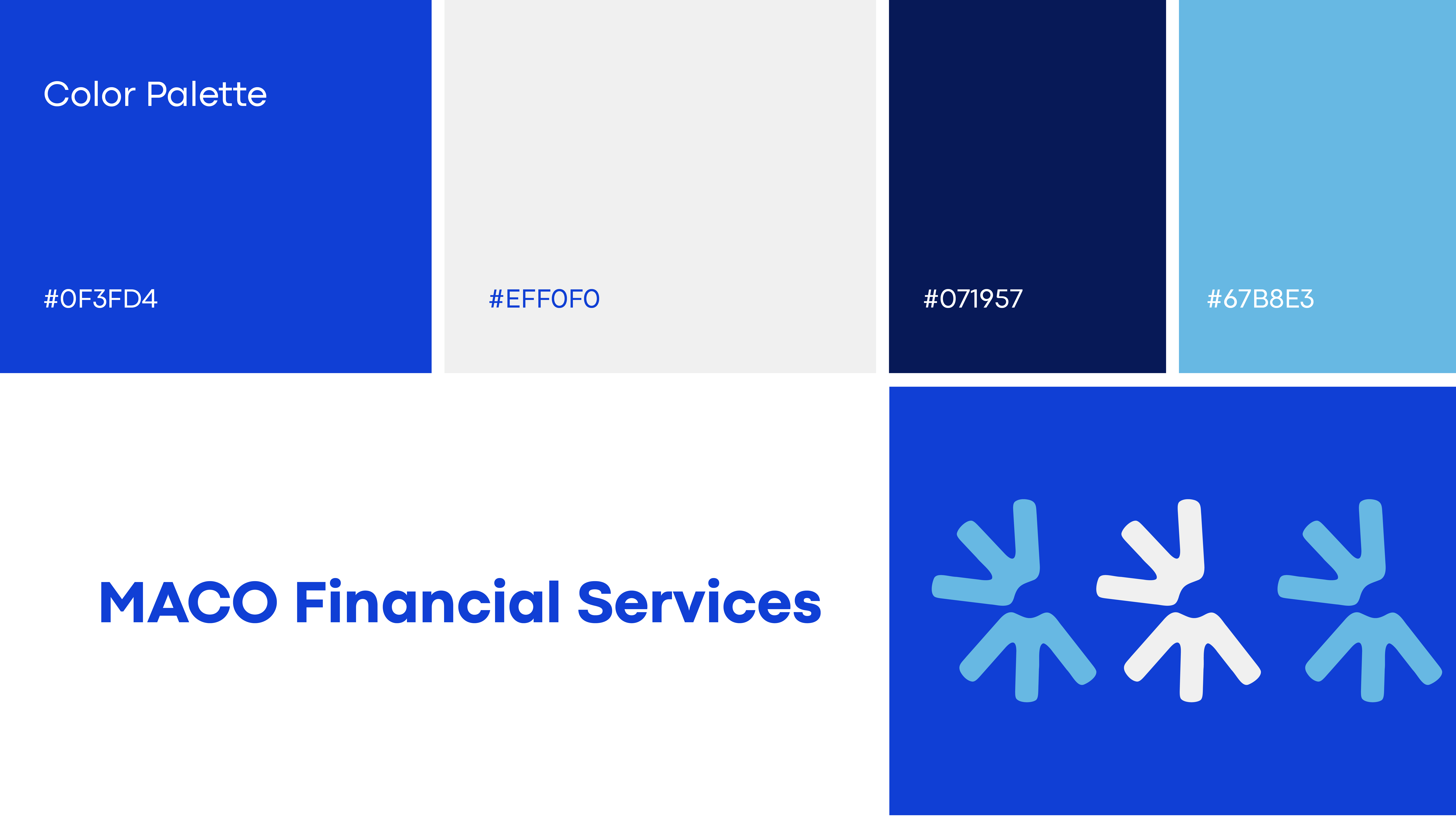 The instances/icons are created using the same design language with the main letter “M” and rectangular shapes. The colour palette is contrasting and suitable for the sub-sectors inside MACO Financial Services.